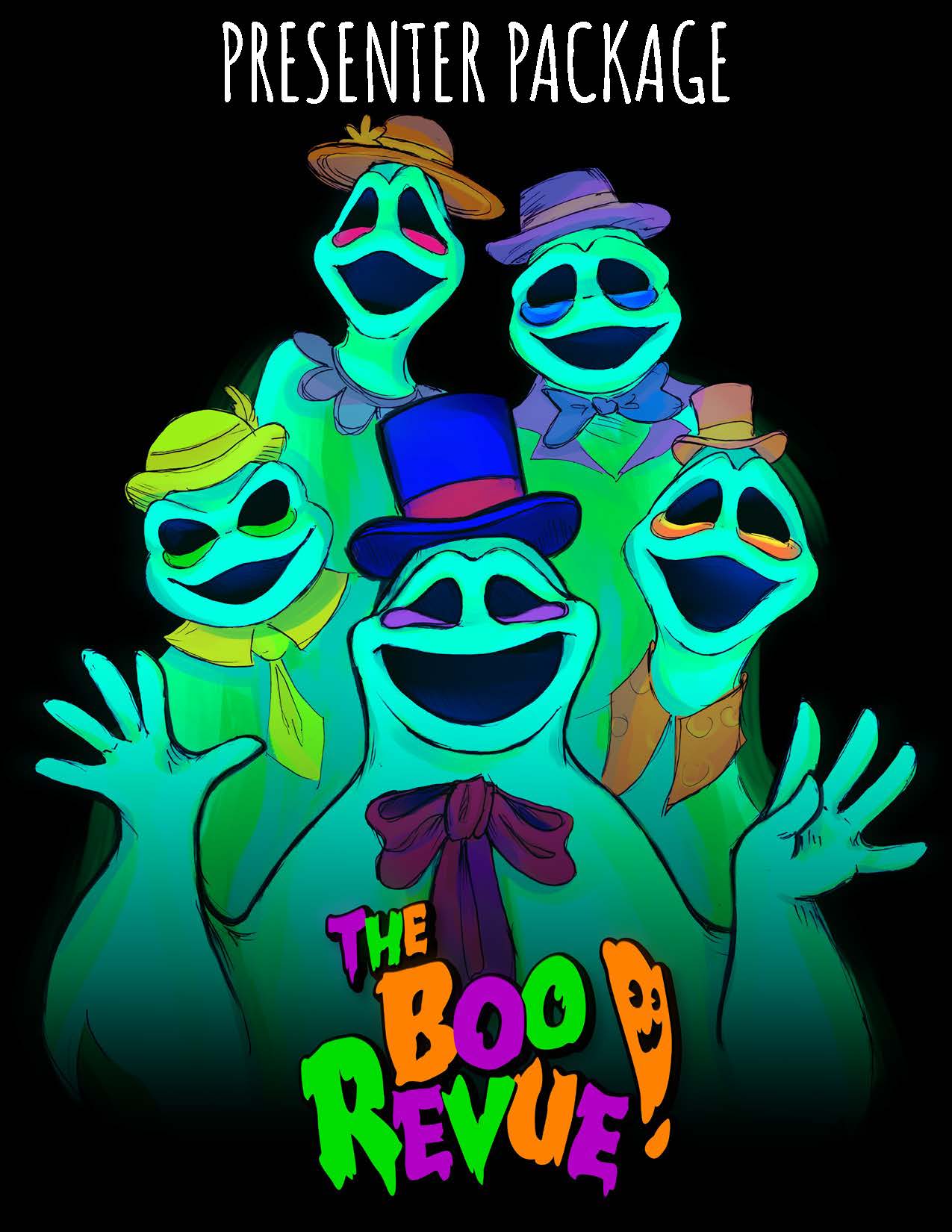 The Boo Revue! is a frightfully fun, family-friendly, blacklight musical show, created by and starring puppeteers Brendan James Boyd and Reese Scott, who appear on Jim Henson's Fraggle Rock: Back To The Rock (Apple TV+).