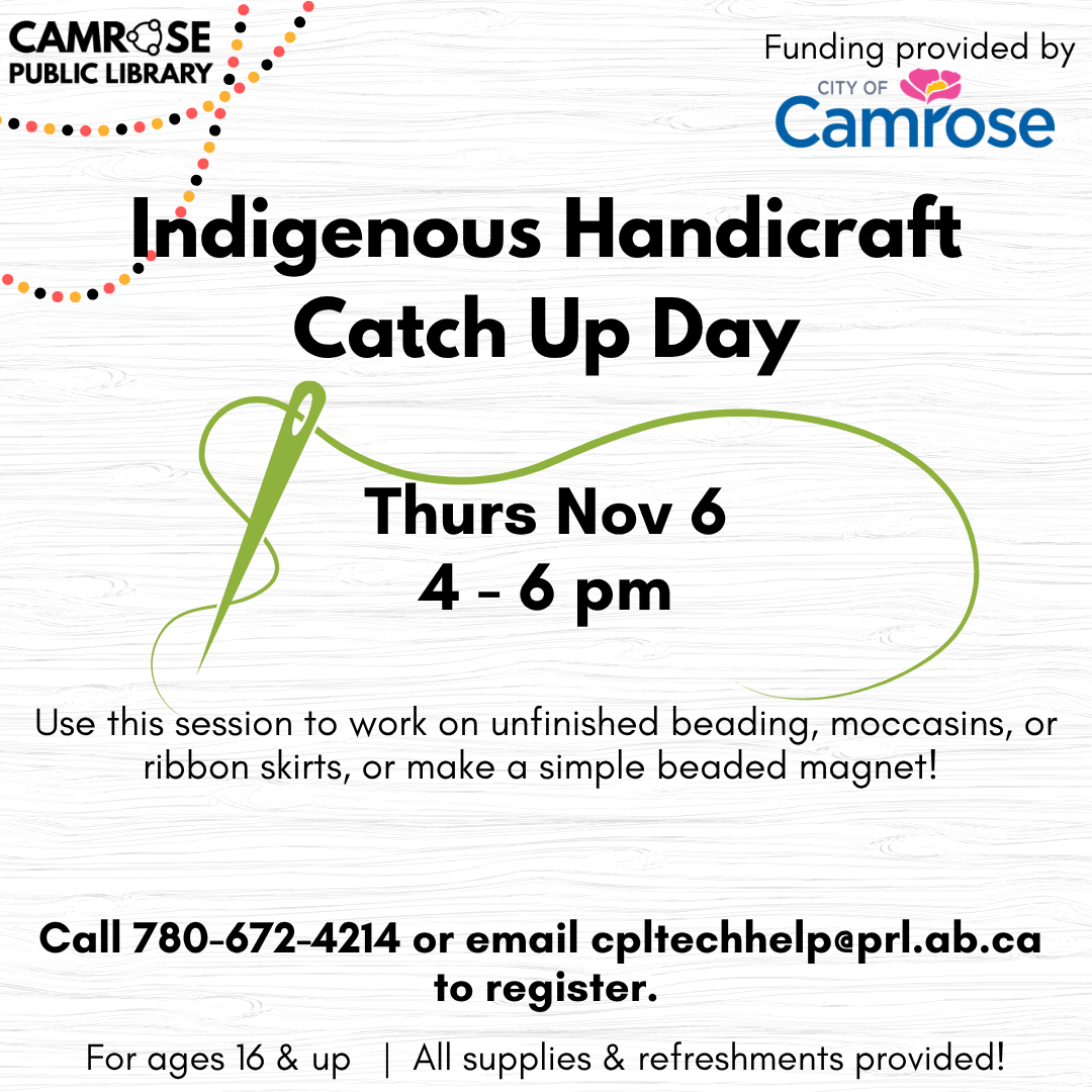 Whether you have an unfinished project from a previous beading circle, moccasin or ribbon skirt workshop, or want to make a simple beaded magnet, this is the day for you! Join us at Catch Up Day for you to get help & work with community in a relaxed...