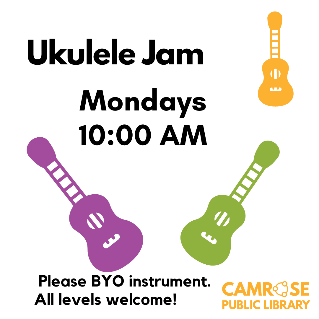 Bring your ukulele and jam away! Players of all levels are welcome to join every Monday* to jam with others. *Exceptions: We are closed Stat Holidays & programs will go on hiatus from December 21st to January 4th.