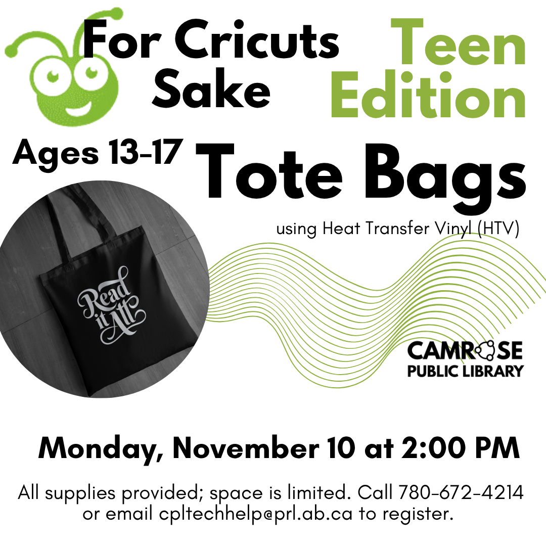 Teens aged 13-17 get to make their very own tote bags with heat transfer vinyl and the Cricut machines over their fall break!