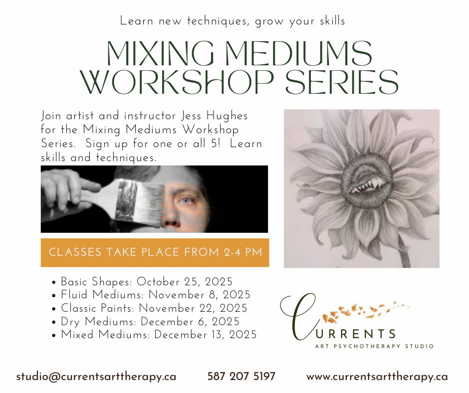 The Mixing Mediums - Workshop Series is instructed by the wonderfully talented artist and instructor, Jess Hughes of Vibrant Hughes. This is a 5 class workshop series, each class is 2 hours in length and offered at the Currents studio. Each class...