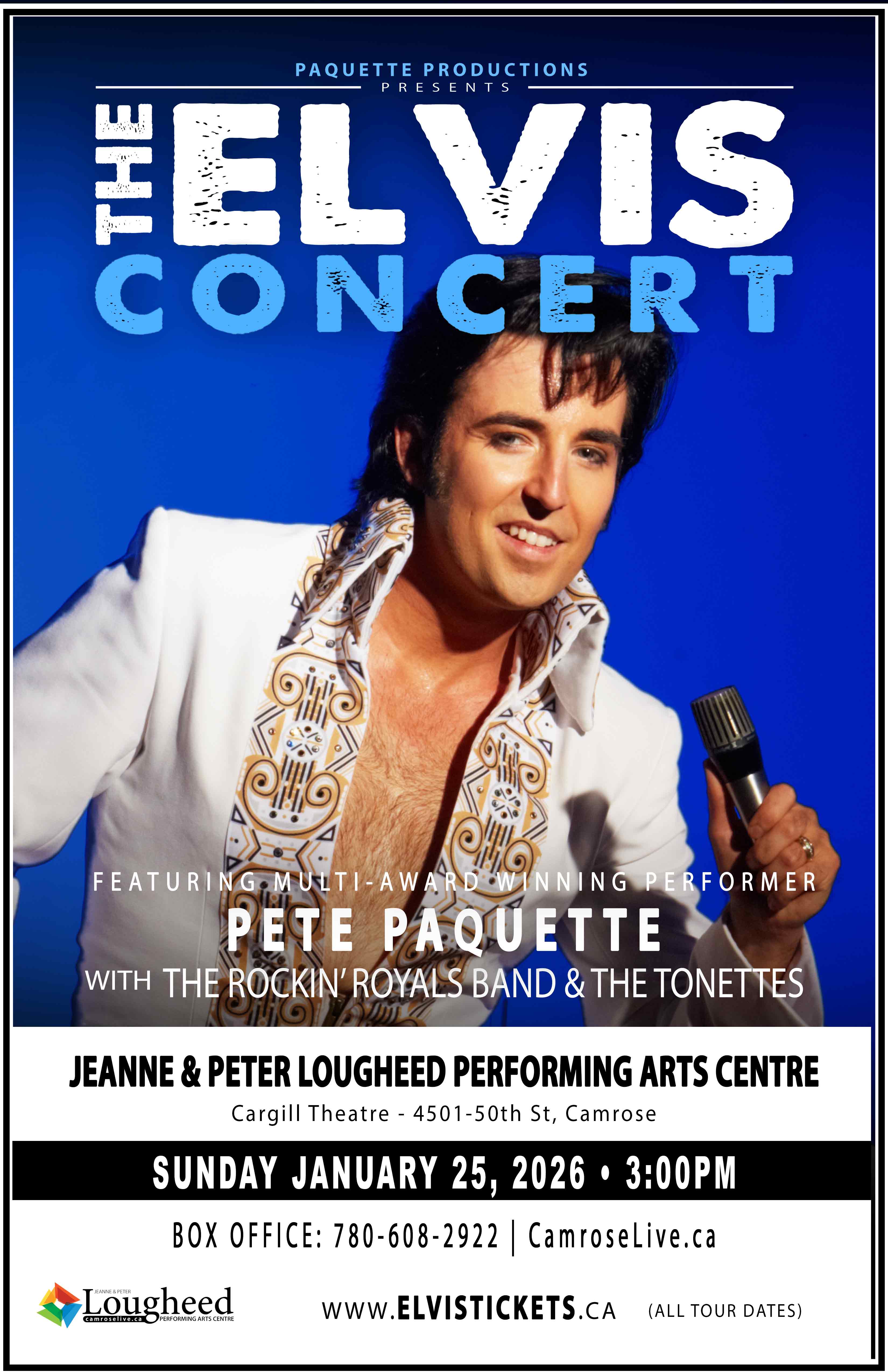 Don't miss Canada's one and only Pete Paquette as he delivers an unforgettable live concert experience showcasing Elvis Presley's music: the 1950s, the 1968 Comeback Special in Leather, and the explosive Vegas years.