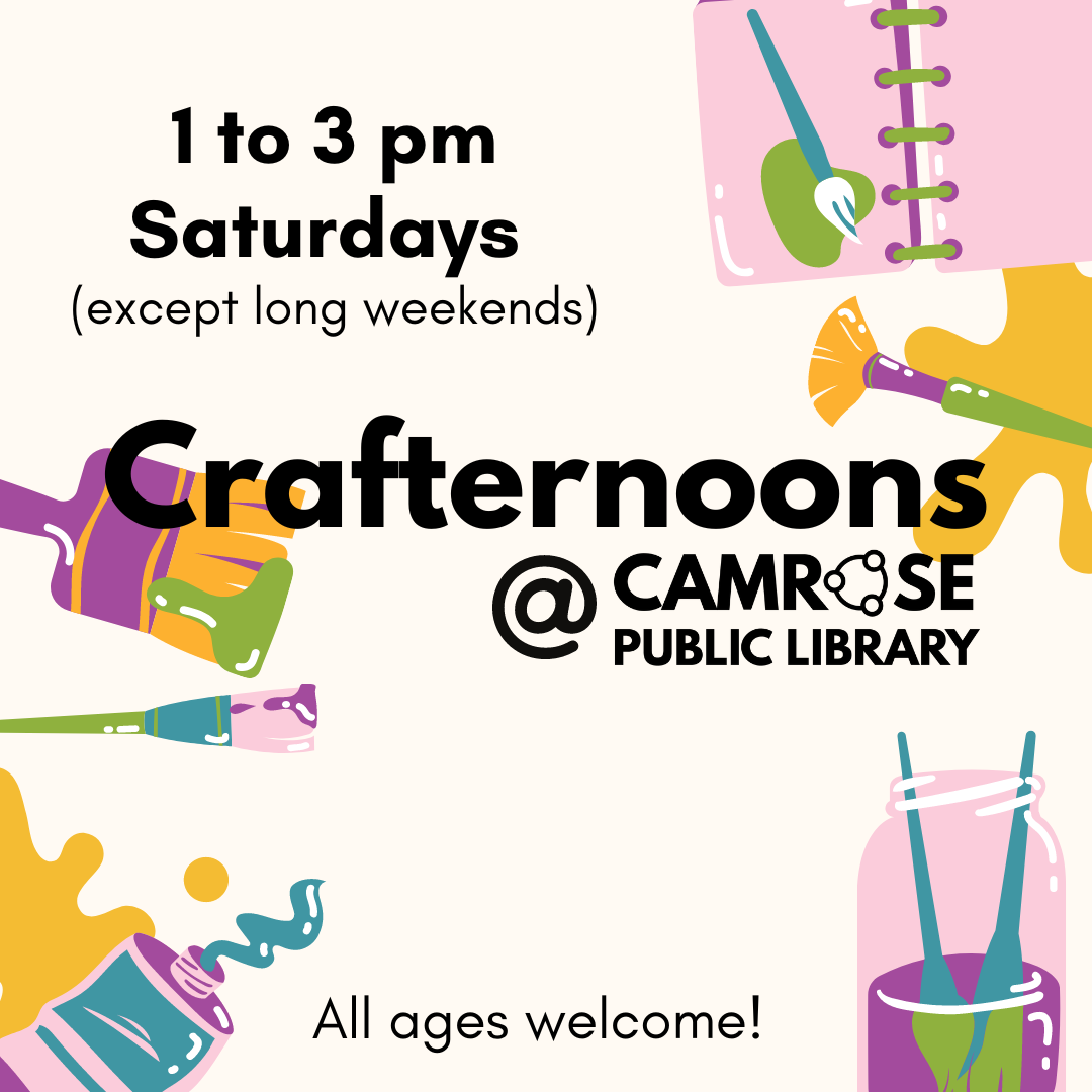 Drop into the Camrose Public Library for fun crafts every Saturday that we're open! All ages are welcome. Supplies are always provided; the occasional Saturday will be DIY due to facilitator absence.Exceptions: The Camrose Public Library is not open...